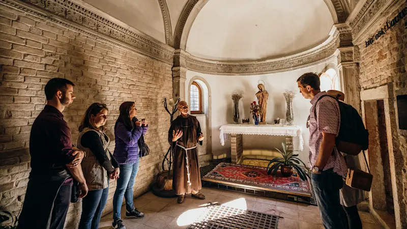 Your day starts when you catch a private boat from Central Venice and head out to the monastery on San Francesco del Deserto for a full tour of the gardens led by one of the friars. Zipping over to Burano, your local Venetian guide will show you the island's famous, brightly-colored houses, which have been the home of Venice’s legendary lace makers since the 16th century. Next, you'll pop into a secret vineyard on the tiny island of Mazzorbo to taste a wine they have been making since the 14th century.