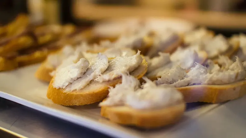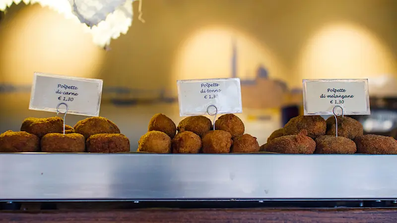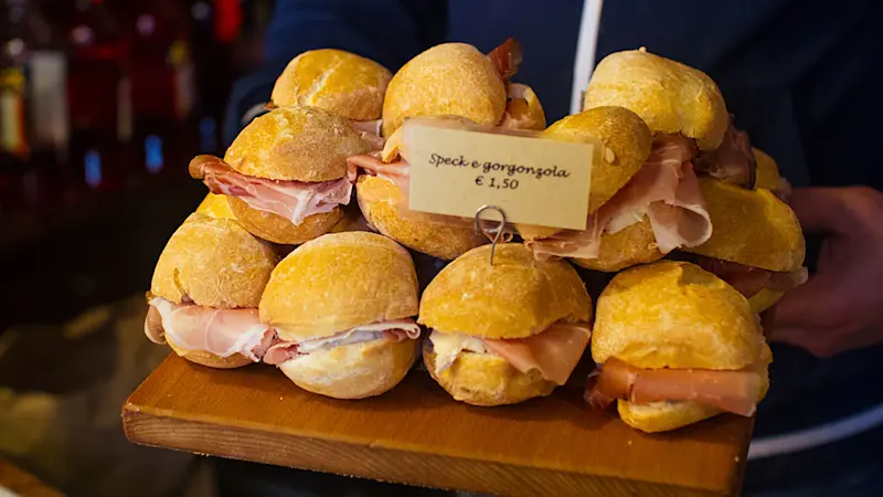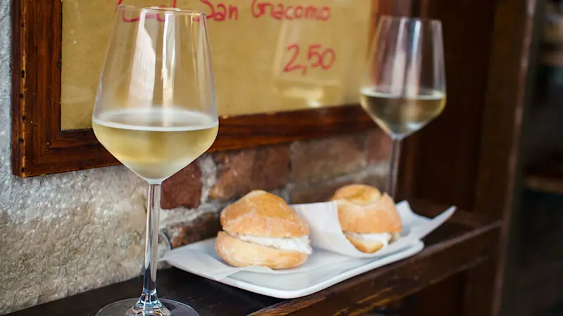 Your first food stop is one of our favorites. This bacaro is a popular gathering spot for locals thanks to its unbeatable cicchetti and a mean spritz. You’ll try two items of your choice here, along with local wine, prosecco, and spritz. We would highly recommend the baccalà, a salted cod dish served here whipped and slathered on bread. So fresh it will knock your socks off.